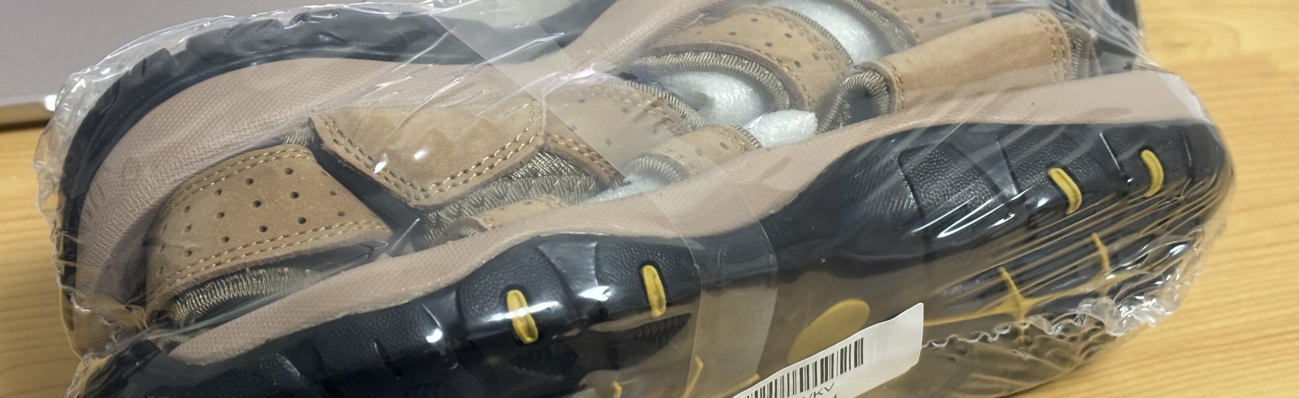 今回購入したものは足の甲部分が全面カバーされているものでしたが、同じ品目で若干メッシュ部分が増えた物もあります。