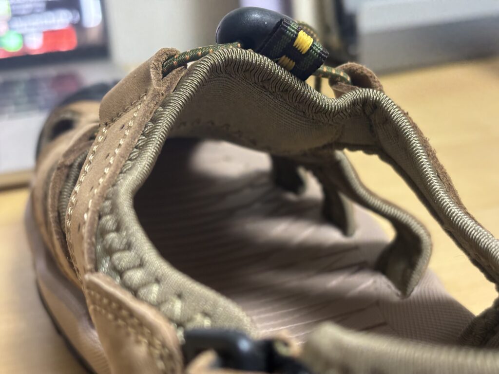 また、アティカのサンダルだと飛んできた焚き火の火の粉が足に当たって熱い事がありましたが、このくらいカバーされていれば少しはマシになりそうです。