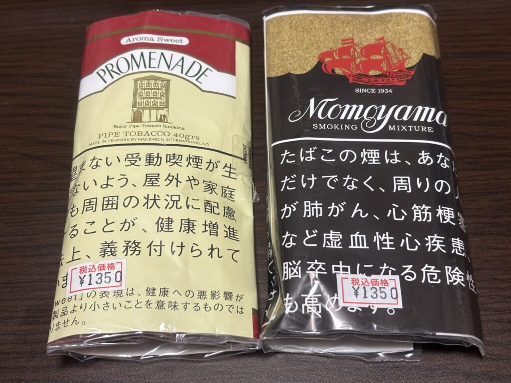 プロムナードというアメリカタイプのタバコと、香りが気に入った桃山を購入。