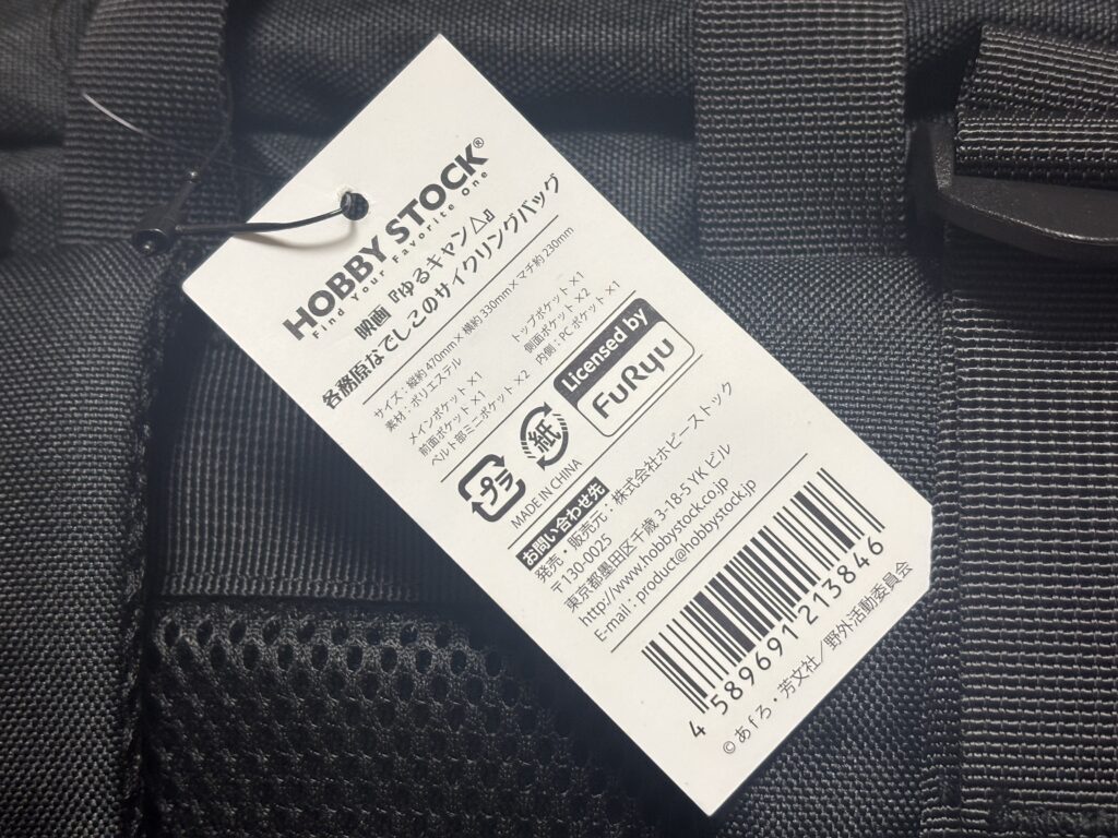 カバンの口の内側には、ゆるキャン△のロゴ。