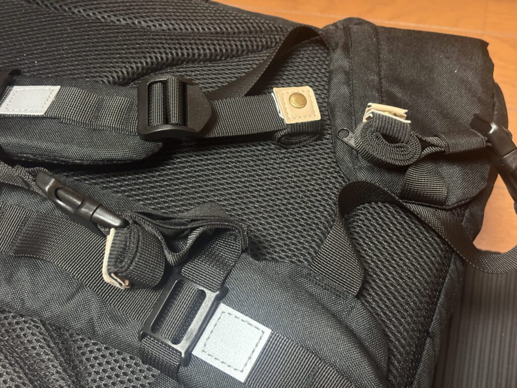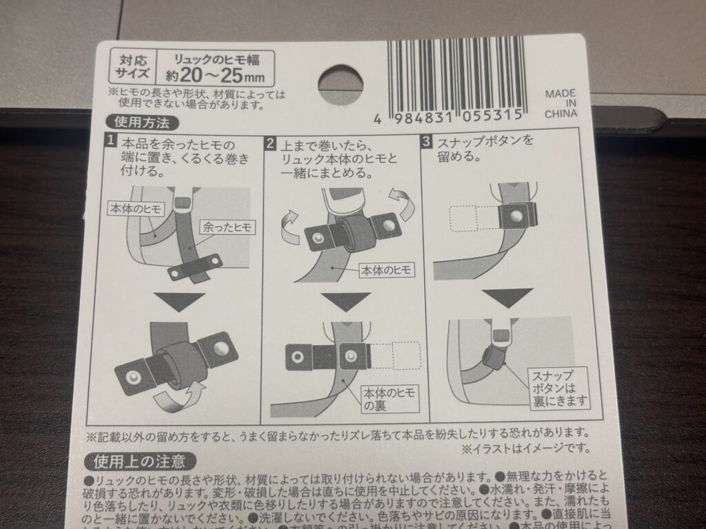 セリアのリュックのヒモ固定バンドを装着