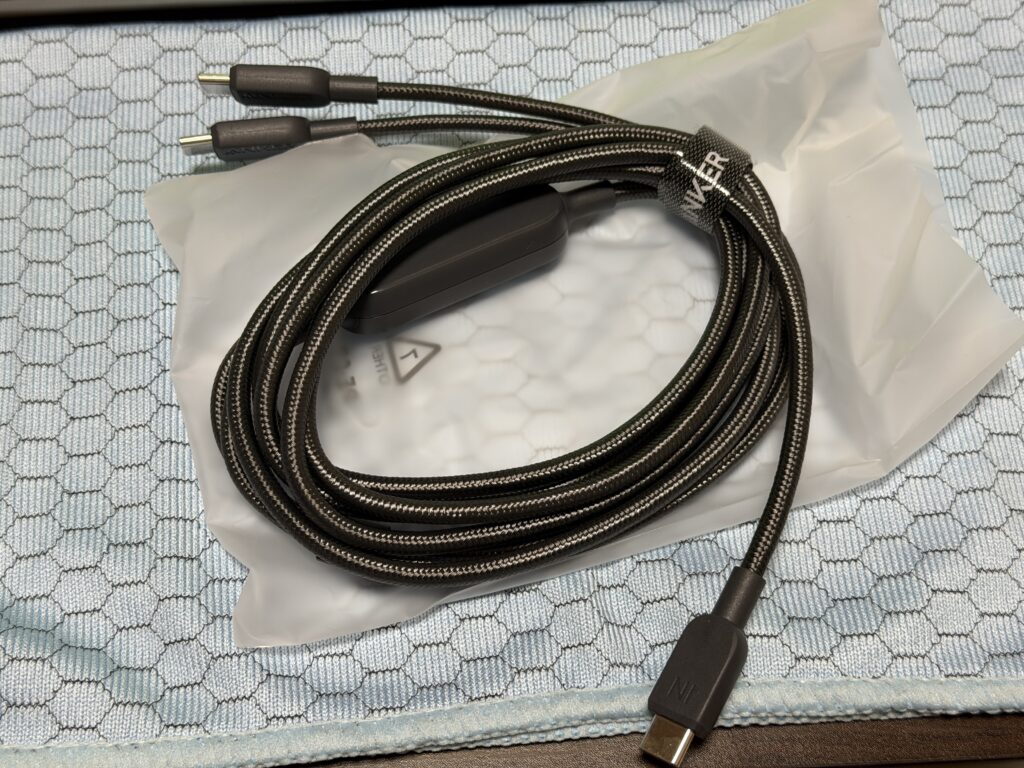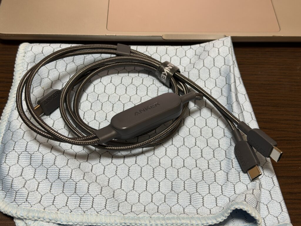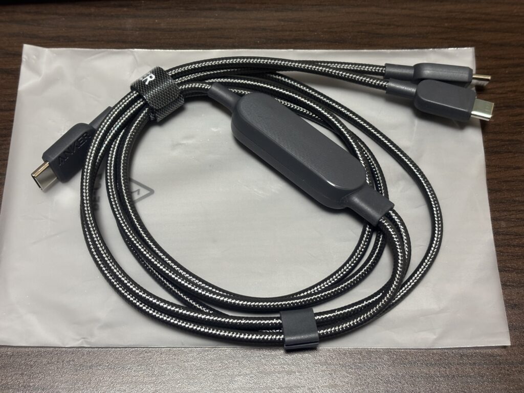 普段ガジェットポーチに入れて持ち歩いているのは、アンカーのパワーラインフローの80cmなのですが、USBポートの数を増やすよりもケーブルの口数を増やした方が機器の充電効率は上がるのでは? と思ったので、こちらのケーブルを購入してみました。