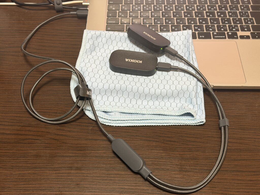 ケーブル1本に付き、認識台数は1台となってしまうようなので、MacBook airのUSBポート2箇所に2本繋いでSSD4台接続、というようなUSBハブに近い事はできないようです。