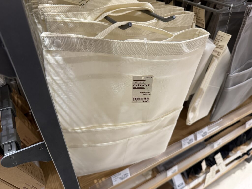 近くには、便利そうなバッグインバッグもあったので、アイボリー、グレー、ブラックの内、ベージュの物を購入。