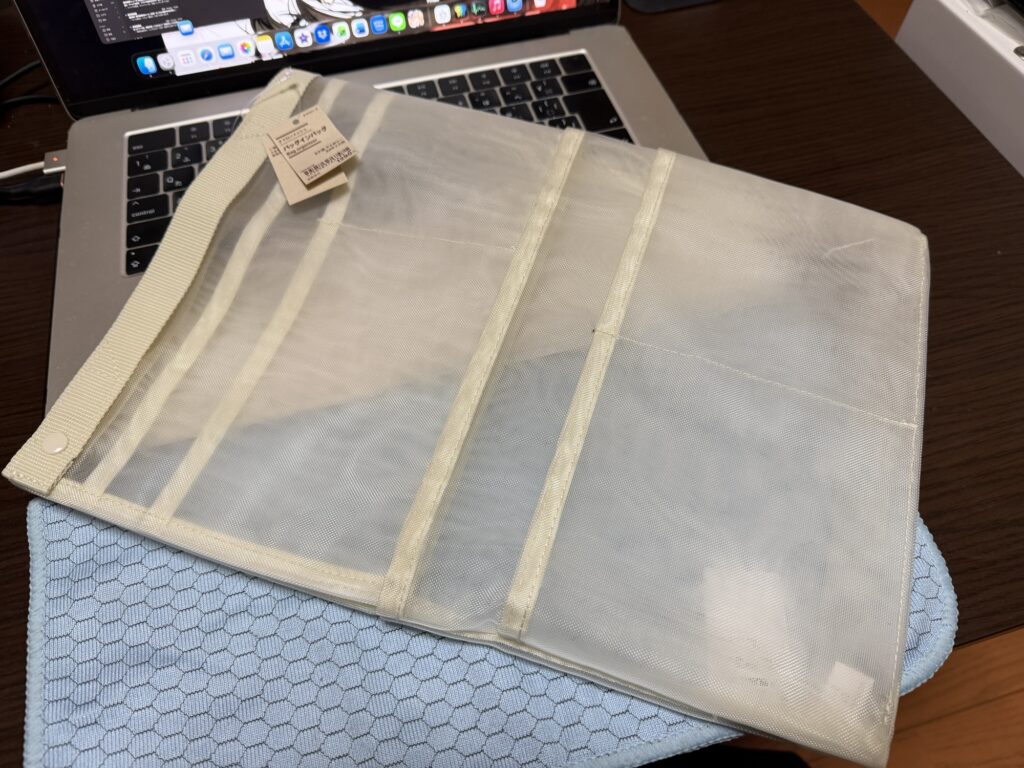 値段的にも1,290円と安価で。無印良品に行けばいつでも買えるので、たとえ破れて壊れたとしてもすぐにリカバリーできます。