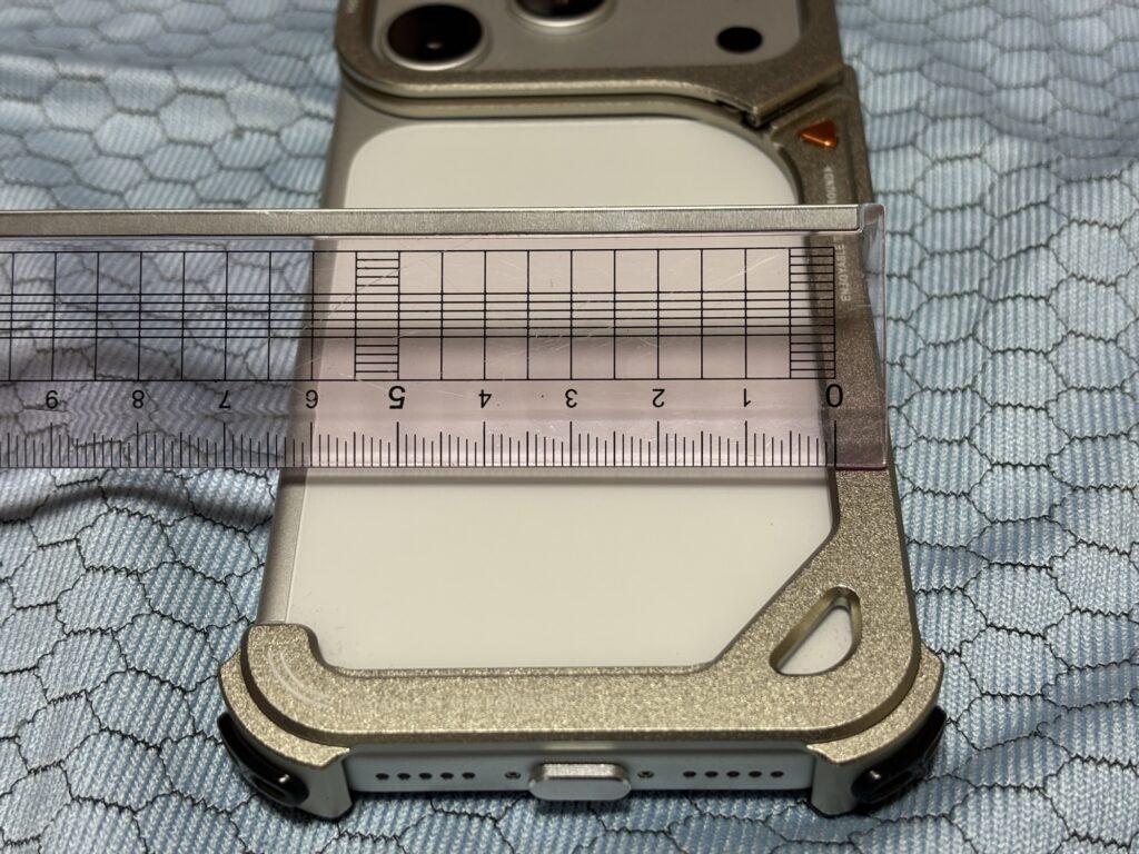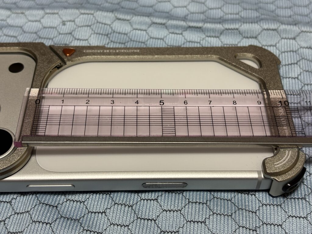 ただし、iPhone本体にバンパーを取り付けると幅が2mm程度大きくなります。