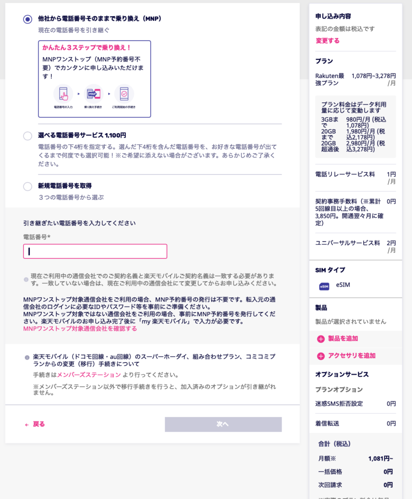 この後の手続きとしては、MNP予約番号を入力するかMNPワンストップ申請をするか、になります。