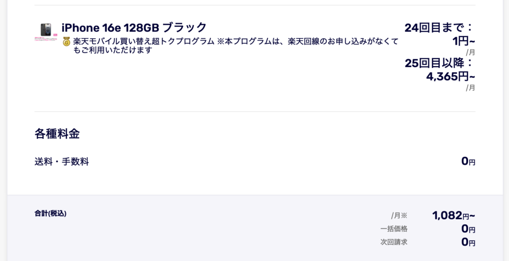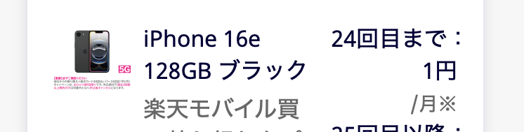 ・iPhone16e 1円(24回目の支払いまで、25回目からは4,365倍)
