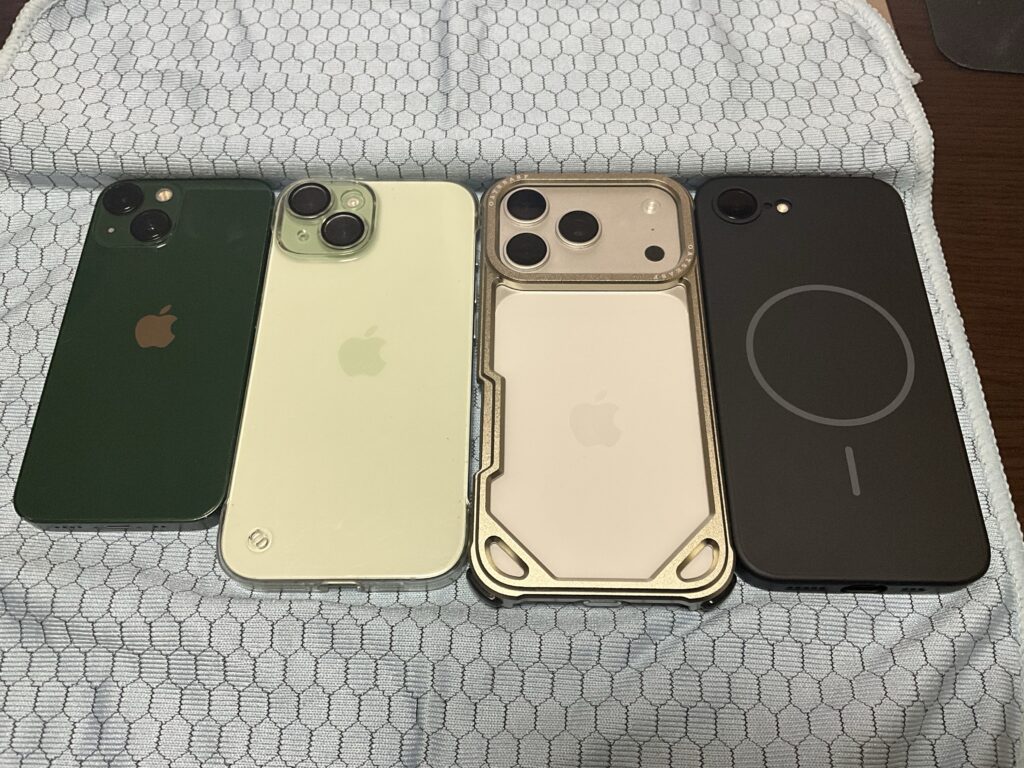 逆に、15以降は15と16eが6.1インチ、17proが6.3インチではありますが、本体自体の大きさはあまり変わりません。