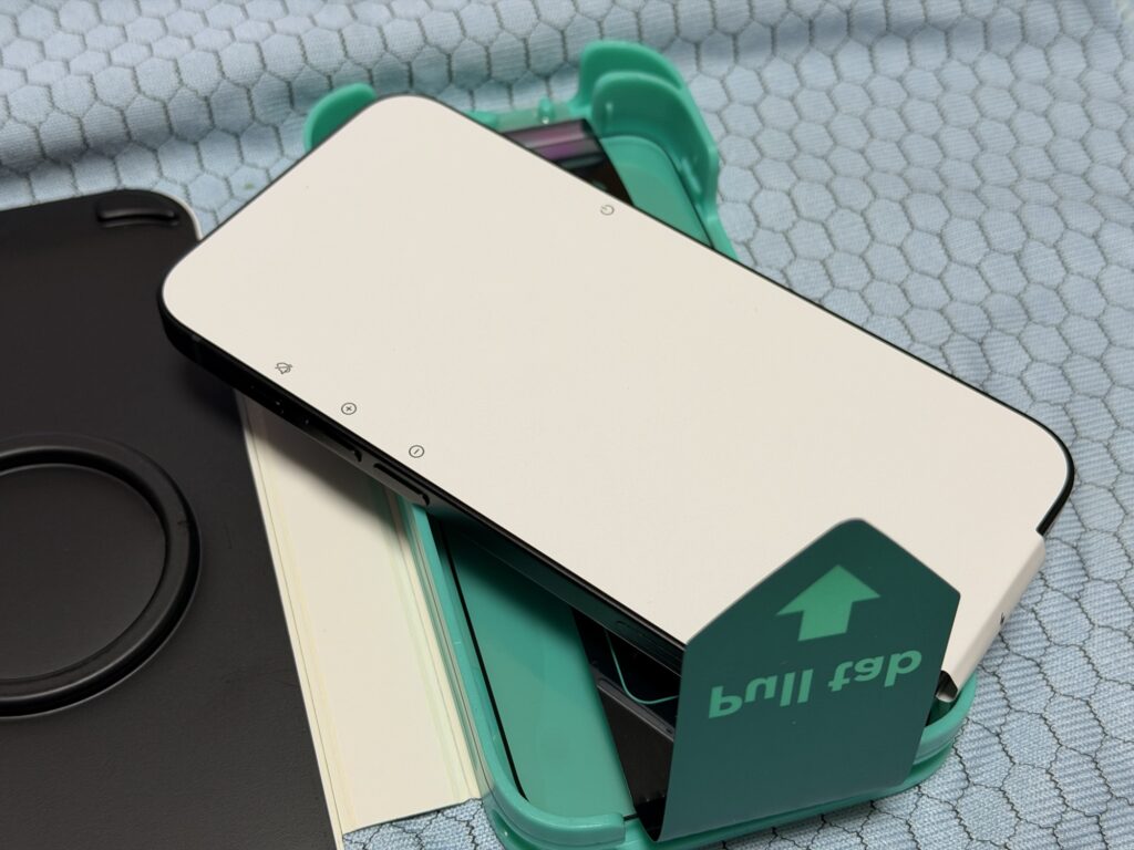 今回は、画面保護ペーパーを剥がしたら即座に貼り付けします。