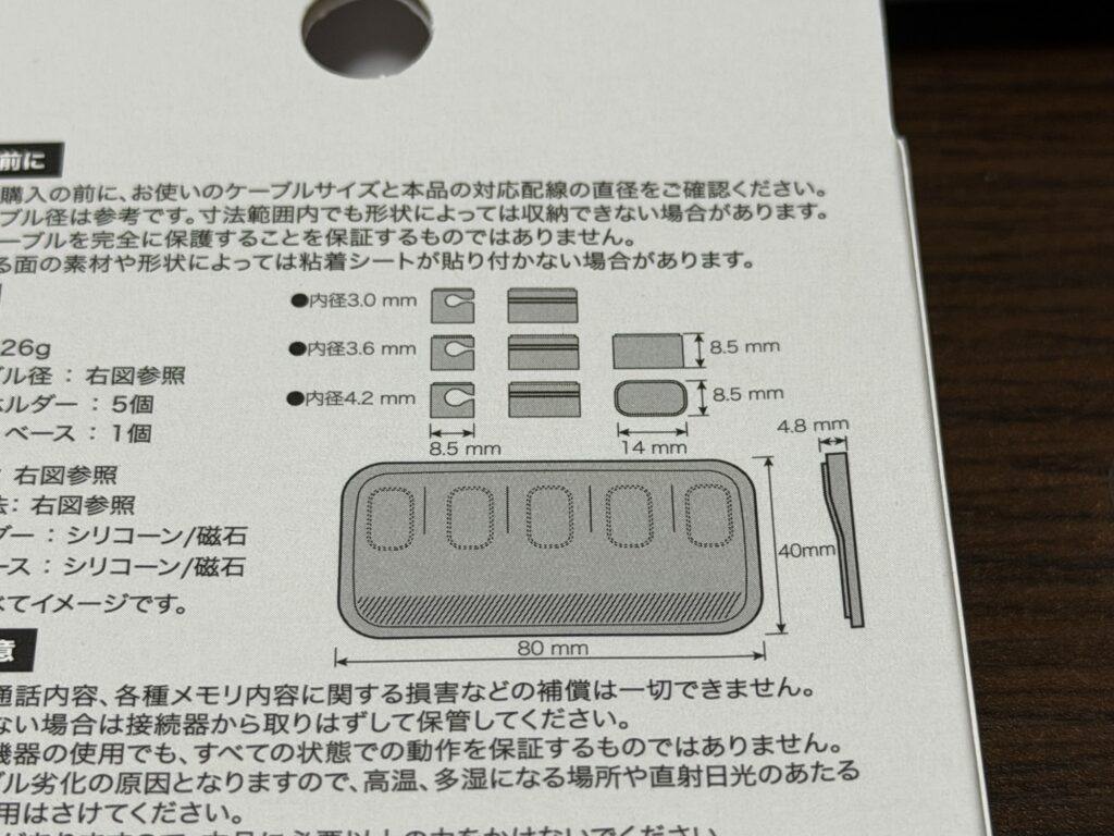 また、全て同じ太さに対応している訳ではないので、使用しているケーブルの種類によっては1本ないし2本だけしか対応していない、という事態も。